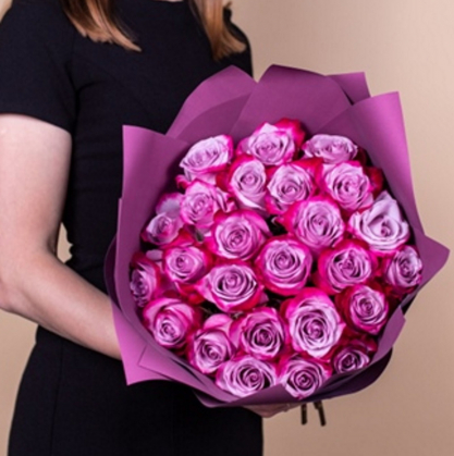 25 роз Deep Purple с упаковкой