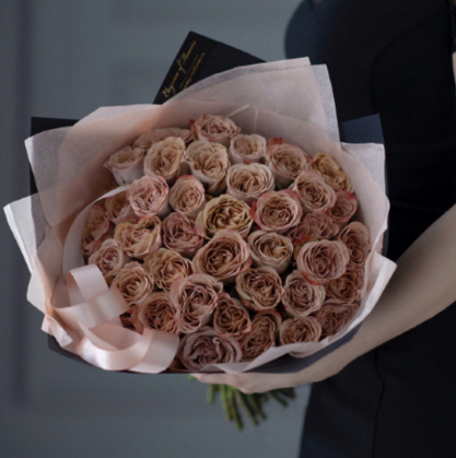 Букет из пионовидных роз в стильной упаковке
