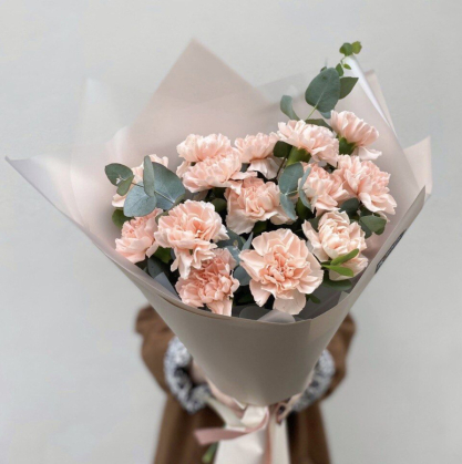 Диантусы - олицетворение искренности и невинности, их мягкие лепестки словно шепчут о любви и заботе. Эвкалипт, с его утонченными листьями и свежим ароматом, добавляет нотку естественности и спокойствия. Наш букет станет прекрасным подарком для близкого человека, подчеркивая ваши самые искренние чувства и желание создать атмосферу тепла и уюта!