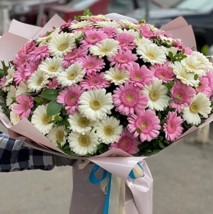 Букет из 101 белой и розовой герберой | Купить в Красногорске
