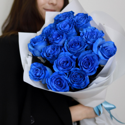 Купить 15 синих роз в упаковке | Цена в Красногорске