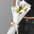 Букет из 5 белых калл с добавление фисташки в стильной упаковке. Можно выбрать любое количество цветов.