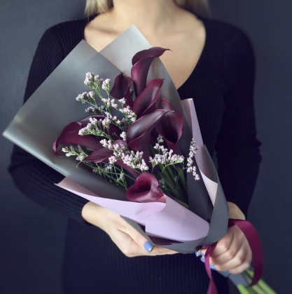 Букет из 9 фиолетовых калл с лимониумом | Купить в Красногорске