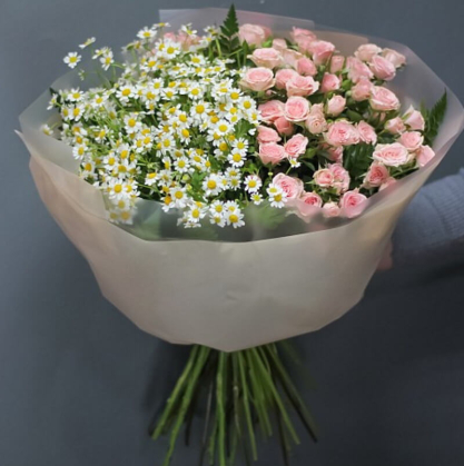 Ромашки и кустовые розы | Купить букет в Красногорске