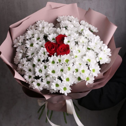 Букет хризантем с розами в центре | Заказать цветы в Красногорске