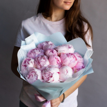 15 светло-розовых пионов Сара Бернар в упаковке с доставкой в Красногорске