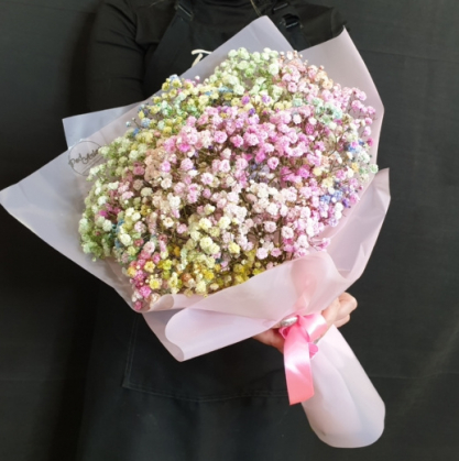 Букет из воздушной разноцветной гипсофилы.