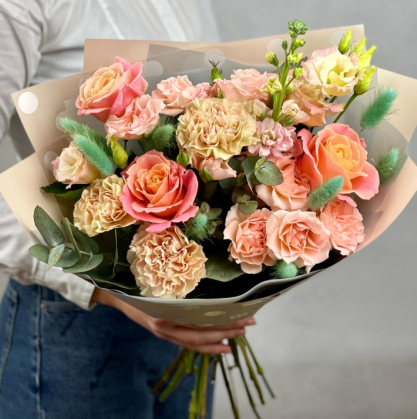 Букет учителю из диантусов и эустомы "С праздником" | Купить в Красногорске