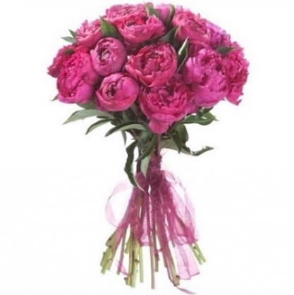 15 малиновых пионов сорта Канзас. Количество пионов в букете можно изменить с помощью калькулятора. В комментарии к заказу можно поменять цвет букета.