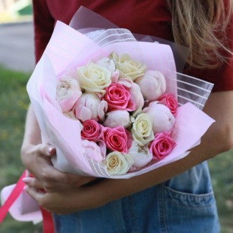 Перед вами коллекция букетов с пионами от интернет-магазина цветов Delaflor. Большое разнообразие сортов пионов, которые порадуют даже самого изыскательного покупателя. Некоторые из популярных сортов пионов: Coral Sunset, Sarah Bernhardt, Bowl of Beauty, Karl Rosenfield, Bartzella и многие другие. Огромный выбор оттенков позволяет подобрать идеальный вариант для любого случая, будь то свадьба, юбилей или просто подарок близкому человеку.