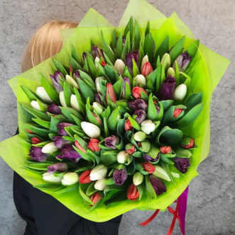 Составляя букеты из тюльпанов, мы используем разные их оттенки. Вы можете заказать у нас букеты из красных, желтых, белых, фиолетовых, оранжевых, сиреневых, розовых и других цветов. В одной композиции могут присутствовать тюльпаны разных оттенков. Кроме того, они могут дополняться другими растениями (например: ирисами, гиацинтами, анемонами), создавая красивейший букет.
