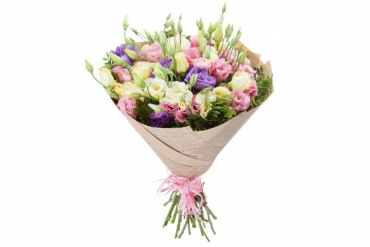 - Универсальность: На одной ветке эустомы может быть несколько бутонов разной степени раскрытия, что придает букету объем и динамику. Она прекрасно сочетается с розами, пионами и гортензиями.