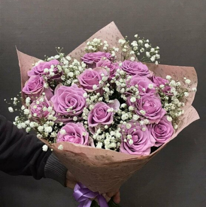 Фиолетовые розы с гипсофилой | Купить букет в Красногорске с доставкой