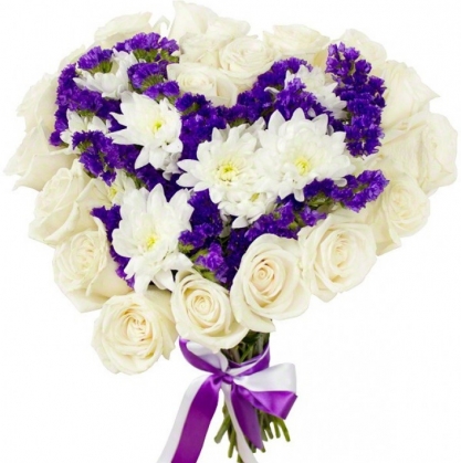 Букет сердцем из роз, хризантем и статицы | Купить в Красногорске