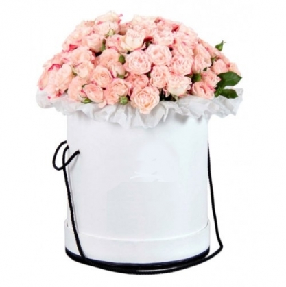 Кустовые розы в шляпной коробке