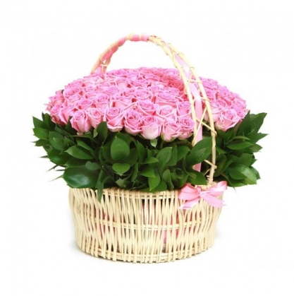 Купить 101 розовую розу в корзине с доставкой в Красногорске