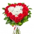 Композиция в виде сердца на проволочном каркасе из красных роз и кустовых хризантем по центру.