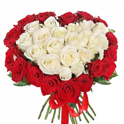 Сердце из белых и красных роз | Фото и цена букета в Красногорске