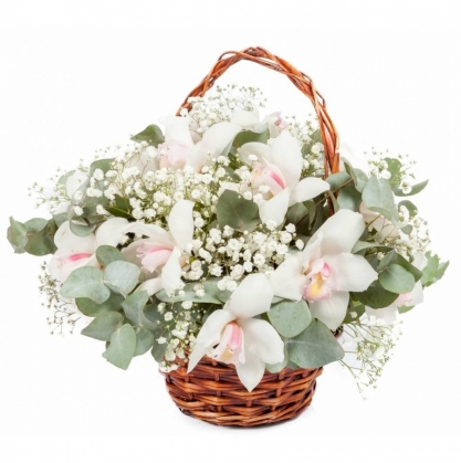 Корзина белых орхидей "Воздушный поцелуй" | Купить в Красногорске