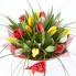Очень нежный букет из белых, красных и желтых тюльпанов.